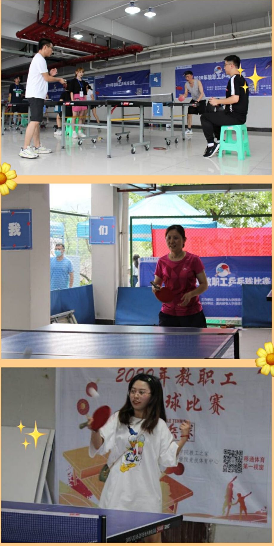 2020年6月16日晚18点,由竞技体育中心承办的教职工乒乓球比赛在行者公园梅若书院乒乓球室如期举行。各位参赛教职工们激烈搏球,你追我赶。平日里只懂得手握粉笔,桃李天下的台上人,在此刻,卸下重负,尽情享受球中之乐。比赛现场气氛热烈,精彩纷呈,在赛场上,各施绝技,积极拼搏,精湛娴熟的球技博得了在场观众的阵阵喝彩。
