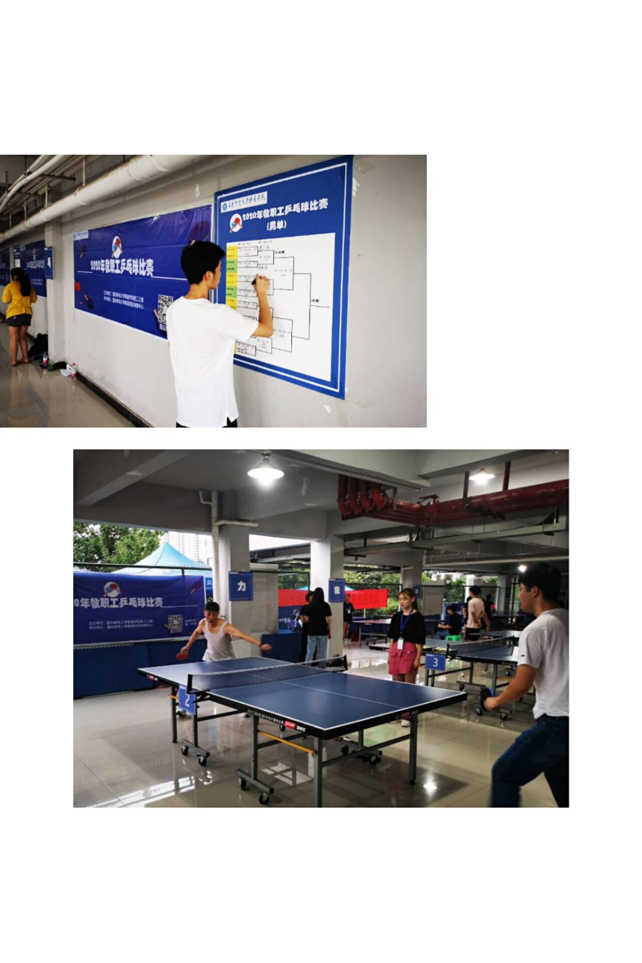 本次比赛分为男子单打、女子单打、体育教师单打三个组别,竞技体育中心体育教师或教练不分男女,安排在一个组别进行比赛。比赛根据抽签的方式决定比赛顺序和对手,每局按11分计算,采用三局两胜,单淘汰制。教职员工积极参加,共有59名教师参与本次活动。