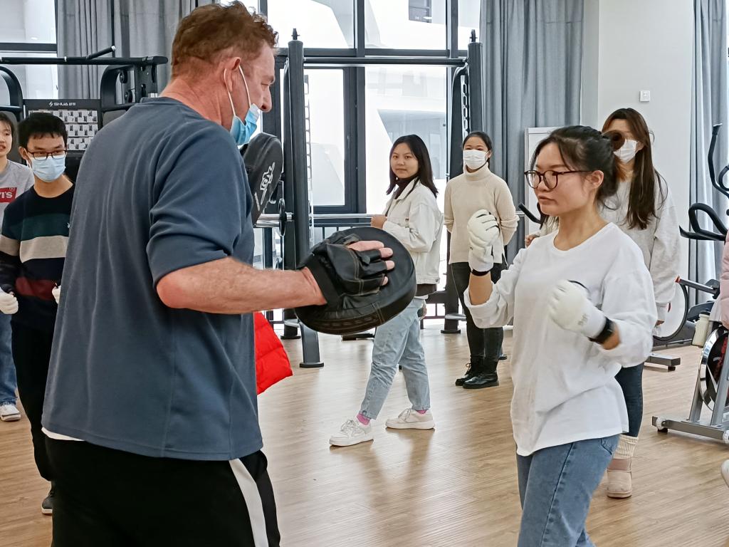 减压运动,似乎没有什么比拳击来得更直接,面对沙包或者对手,用拳头就可以将情绪宣泄出来。鱼城书院希望以场景创设的形式,借助国际交流与合作处外籍专业师资,将学校资源和书院空间价值发挥到极致,为学生参与国际项目打好坚实的语言和文化基础,提升外语专业学生语言水平的同时,为非专业学生搭建兴趣圈层,在书院营造良好的朋辈互助氛围。