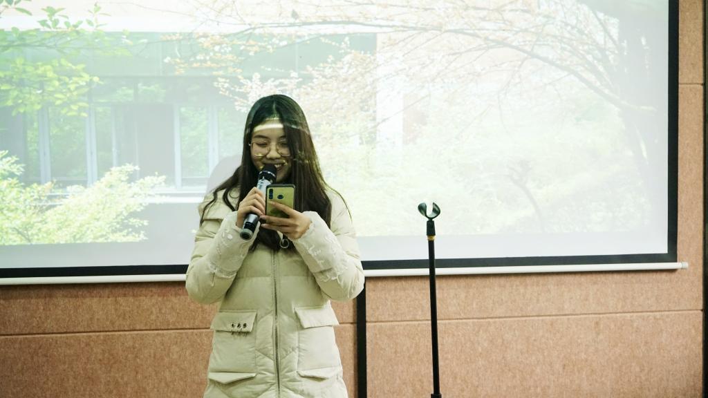 一位来自大数据与软件学院的男生,以他的流利演说、精确发音和自信的姿态百分百脱稿,赢得了现场同学们阵阵掌声。金鑫老师肯定了这位男生的演说实力,向大家分享了非英语专业的同学在经过精心准备和刻苦练习后也能一样展示英语口语风采。只要方法正确,坚持练习,日拱一卒,逐步改进,最终都可以超越原来的自己,愿在场的每位同学能以优秀学长为榜样,不断尝试、直面困难,在演讲中收获自信,收获改变、迭代、提升,成为一名出色的移通演说家。