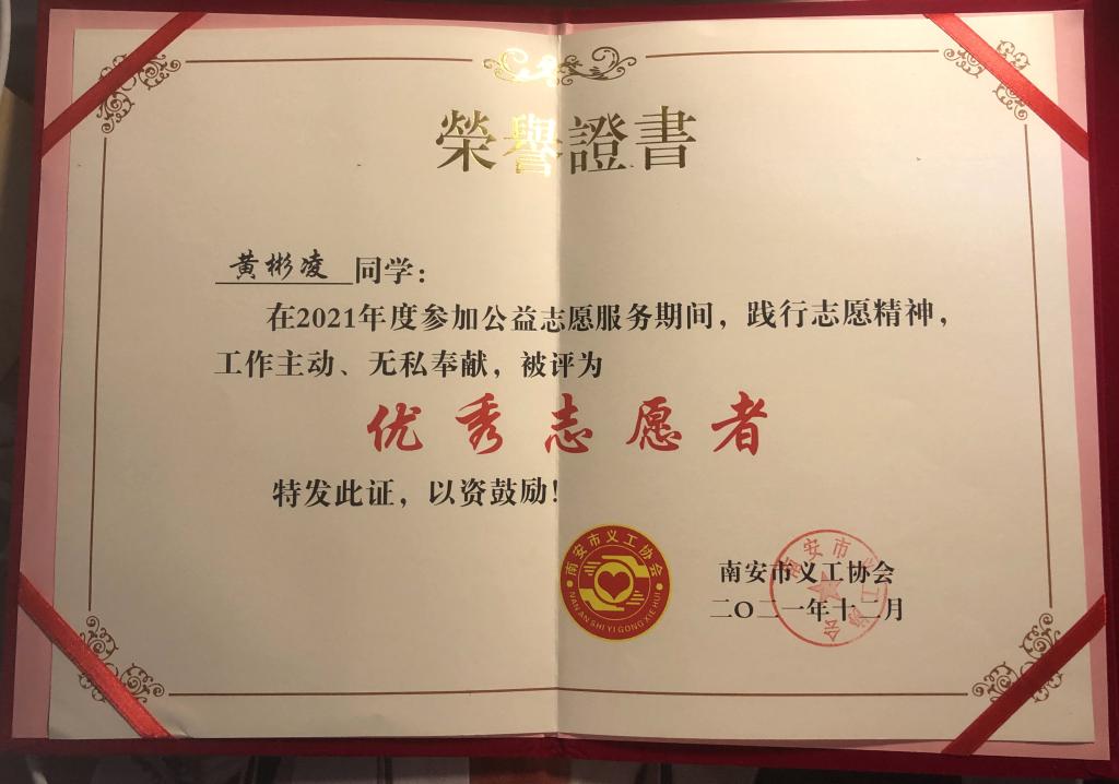 在寒假期间,北山书院21级资产评估专业黄彬凌同学在南安市义工协会市区服务中心参加义工活动,志愿时长36天,参加了近10场志愿活动以及32次志愿者驿站值班。黄彬凌认为,“在每次志愿活动中得到不同的体验,在实践中锻炼了自己,了解到了社会中不同人群的需求,也为社会献出了自己的一份力量。”