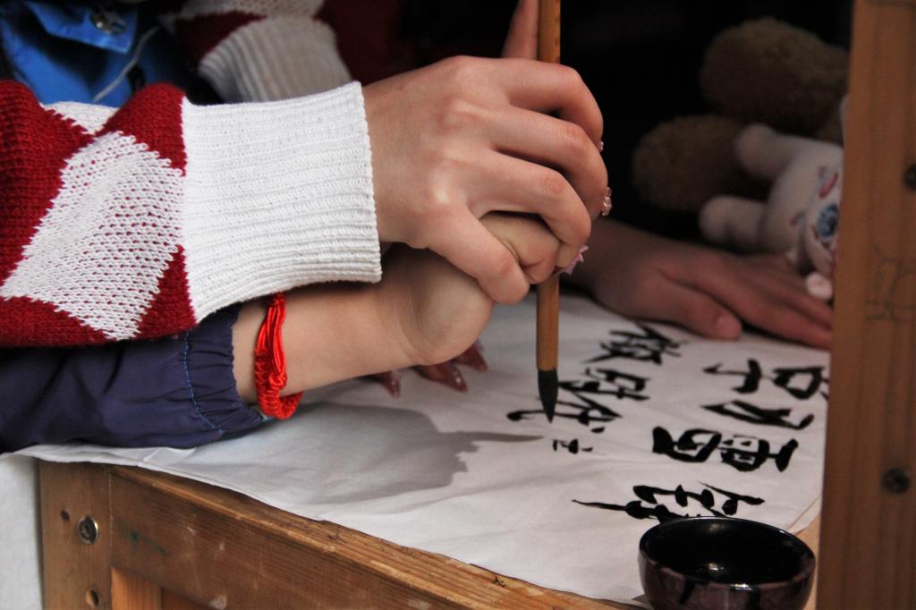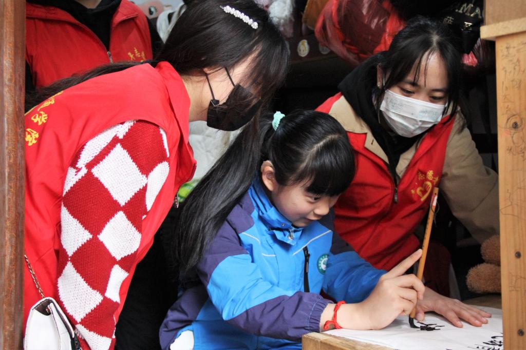 志愿者将北山书院“百匠工作室”模块化带进儿童视线,把中国传统文化浸入日常生活,让孩童在书法、泥塑等活动中享受快乐。在志愿者的帮助下,孩子写下“雷锋”、“爱”等字样,稚嫩的笔画迎着墨水,使年轻一代与中国力量碰撞结合。