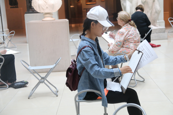 同行的Mia到了雕塑的地方也饶有兴趣的拿起了画笔开始了素描,很有趣的是没有画画功底的她画出的素描没想象中的那么糟还是别有一番风味,或许是在这个充满艺术气息的氛围里给熏陶的。