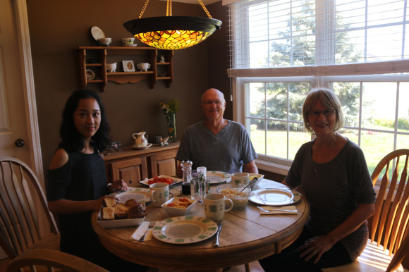 花园里Dave跟我们分享了Lily的Facebook上的旅行照片以及家人照片,由此我们了解到Dave和Lily是两个很伟大的父母哦,子女分别在墨西哥和也门有自己的工作以及家庭生活,他们并没有去限制自己的子女该做什么该留在哪里如何生活,反之是尊重子女的决定,照片里的他们很幸福。这大概也和大多数中国家庭父母的观念不同吧,中国很多家庭都无法接受子女在很远的城市工作更别说其他国家定居生活了。我无法比较谁好谁坏,毕竟二者都是爱自己子女的表现。