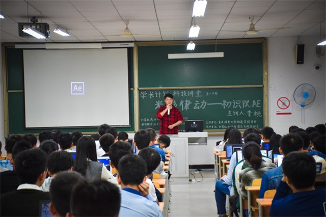 时光的流逝,让我们感受到日新月异的世界;岁月的变迁,让我们步入了互联网+的时代。高速发展的网络时代,让我们每天都在接受着新的知识,但网络时代,需要的不仅仅是享受别人制作的成果,更重要的是运用知识去创造自己的成绩。由重庆邮电大学移通学院团委主办,计算机科学系团总支科技协会承办,科技协会部长李桃主讲的学长计划·科技讲堂第十四期,光影律动——初识AE、PR活动在10月19日晚开展。