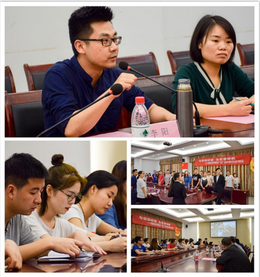 99年前的“五四”运动是百年中国现代化运动的重要转折点,是一场伟大的政治运动,思想运动和文化运动。99年后,五四,这个充满着爆发力的词语仍然深深的渗透在每一个青年的骨髓中,青年是国家的未来和民族的希望。这一句话,对于我们来说并不陌生,从小就是在这样的教育下长大的。至于青年,我们应该如何发扬五四青年精神以及担得起社会的责任呢?作为青年人,在新时代的背景下,首先应该了解五四产生的历史,学习五四精神,设想当年峥嵘岁月,身体力行感知社会责任,书写五四情怀,展望未来以及描写未来蓝图。为纪念“五四”运动99周年,重庆邮电大学移通学院大数据与软件学院于2018年5月3日下午16:30在107会议室开展了以“与信仰对话,为青春导航”为主题的学生骨干座谈会。本次座谈会邀请到的嘉宾分别是:中共重庆邮电大学移通学院委员会组织委员老师逯静、思政部老师李阳、大数据与软件学院团总支书记谢银平老师、大数据与软件学院学生党支部副书记兼组织委员吴垟成老师、宣传委员任瑞娟老师 、就业服务指导老师童学容老师、艺术修养板块指导老师唐凌云老师 志愿服务指导老师王焱、体育竞技指导老师马喆、学风建设指导老师阙小梅。