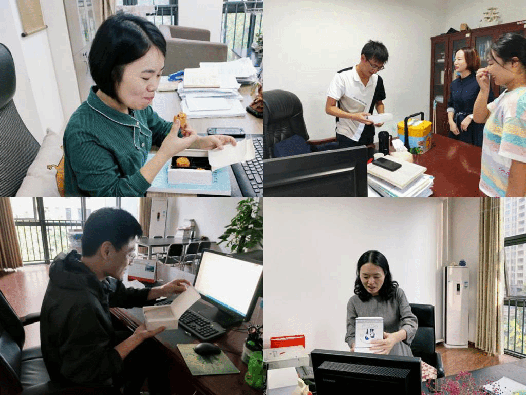 中秋除了有团圆之意还蕴含着一切和谐之意。和者,禾旁加口,人人有饭吃也;谐者,言旁加皆,人人敢讲话也。社会“和谐有序”,国与国之间要“和而不同”,干事业要“和衷共济”,处世要“和光同尘”,邻里之间要“和睦相处”,待人要注意“和蔼可亲”。正如苏东坡说的“但愿人长久,千里共婵娟”,美食协会发扬赏月吃月饼的中秋习俗,制作了精美的月饼送给了还在办公室辛勤工作的老师。一个小小的月饼承载的是美食协会的沉甸甸的祝福。月饼香甜,以爱为馅,传递温暖,希望每一个吃到美食协会制作的月饼的人,都能感受到美食协会满满的温情。