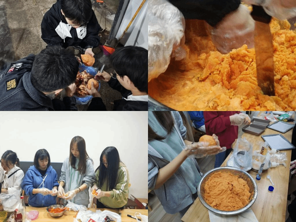 9月28日早上八点整,“风清月白,共度中秋”主题活动在一片朗朗秋色中拉开帷幕。工作人员来到廊桥书院千禾烘焙坊进行活动前的准备,洗用具、削红薯皮、蒸红薯、碾红薯泥……上午十点整,参与活动的同学陆续到场。工作人员按照步骤依次手把手教同学们制作月饼,从手足无措到得心应手,从做月饼皮到包馅再到压花进烤箱,同学们都兴致勃勃地参与其中。随着烤箱叮咚一响,大家亲手制作的月饼新鲜出炉,红薯和豆沙的香味扑鼻而来。在腾腾香气中,同学们找到自己做的月饼,尽情地享受着这份特殊的美味。酥黄的皮,甘甜的馅,中秋节气的喜悦通过味蕾传进了每一位同学的心里。