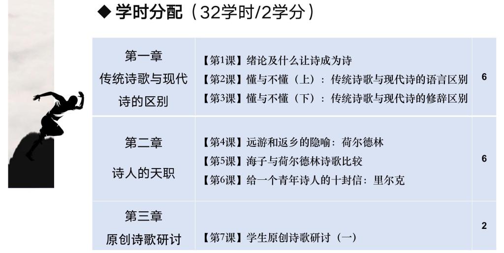 在正式进入课堂之前,苏瓷瓷老师将《诗歌工坊》课程内容做了介绍,从走进诗歌到了解诗歌再到创作诗歌。每一个章节的学习重点都不同,苏老师说道:“这不是一门理论课,我不会大篇幅的去向大家展示理论知识,那样比较枯燥,我更愿意带着你们一起赏析,一起感悟,一起创作。”是的,作家班的课程主角一直都不是老师,而是学生们,不是将知识强硬的塞进学生的脑内,苏老师提到,我们的课堂是写作与研讨、讲授与讨论、阅读与分析的结合,而不是老师在讲台上单方面输出。