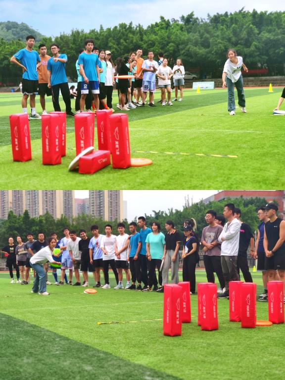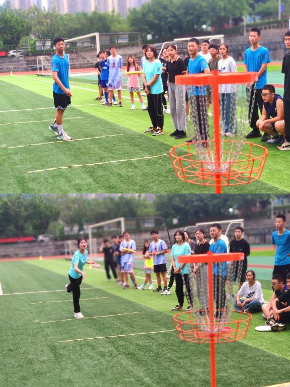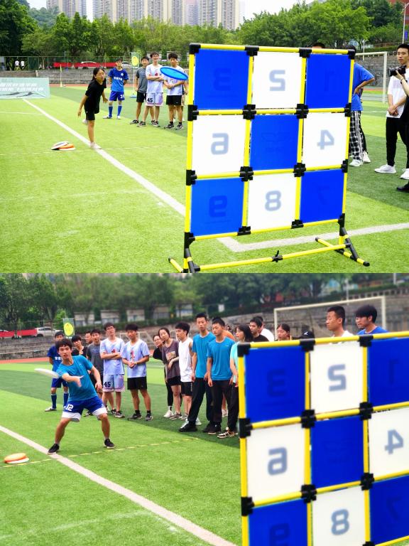 为助力全民健身国家战略及健康中国建设,进一步推进阳光体育运动在我校的蓬勃开展,以国际运动为切入点,培养学生运动英语表达、充分了解飞盘运动文化内涵,帮助师生拓宽国际视野,促进高校间友好交流,实现新形势下的健身目标“健体、健心、健志”。6月10日,鱼城书院、南湖书院和营地教育中心、竞技体育中心体育活动部联合举办的“Make Passion Fly”重庆移通学院首届极限飞盘挑战赛在南校区运动场精彩开赛,通过极限飞盘、飞盘保龄球、飞盘高尔夫、飞盘九宫格四个环节与重庆对外经贸学院代表队展开了激烈比赛,彰显了移通学子风采。