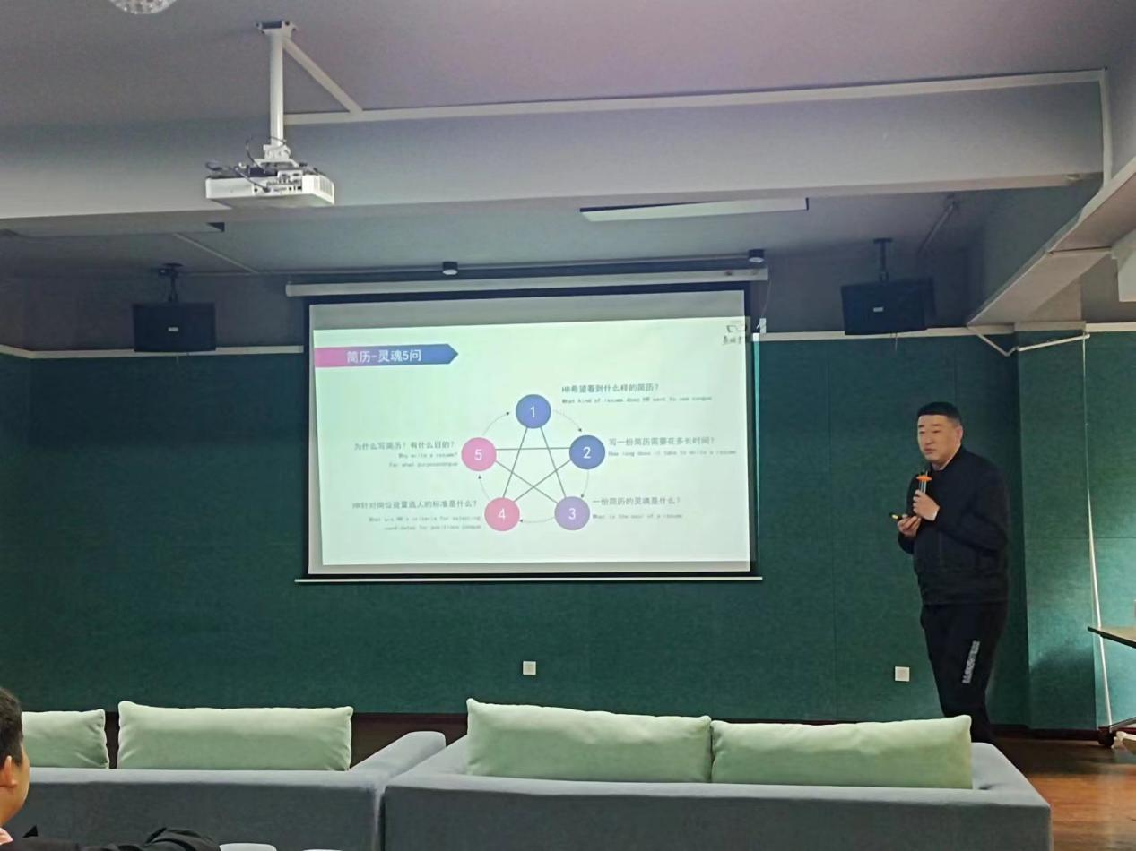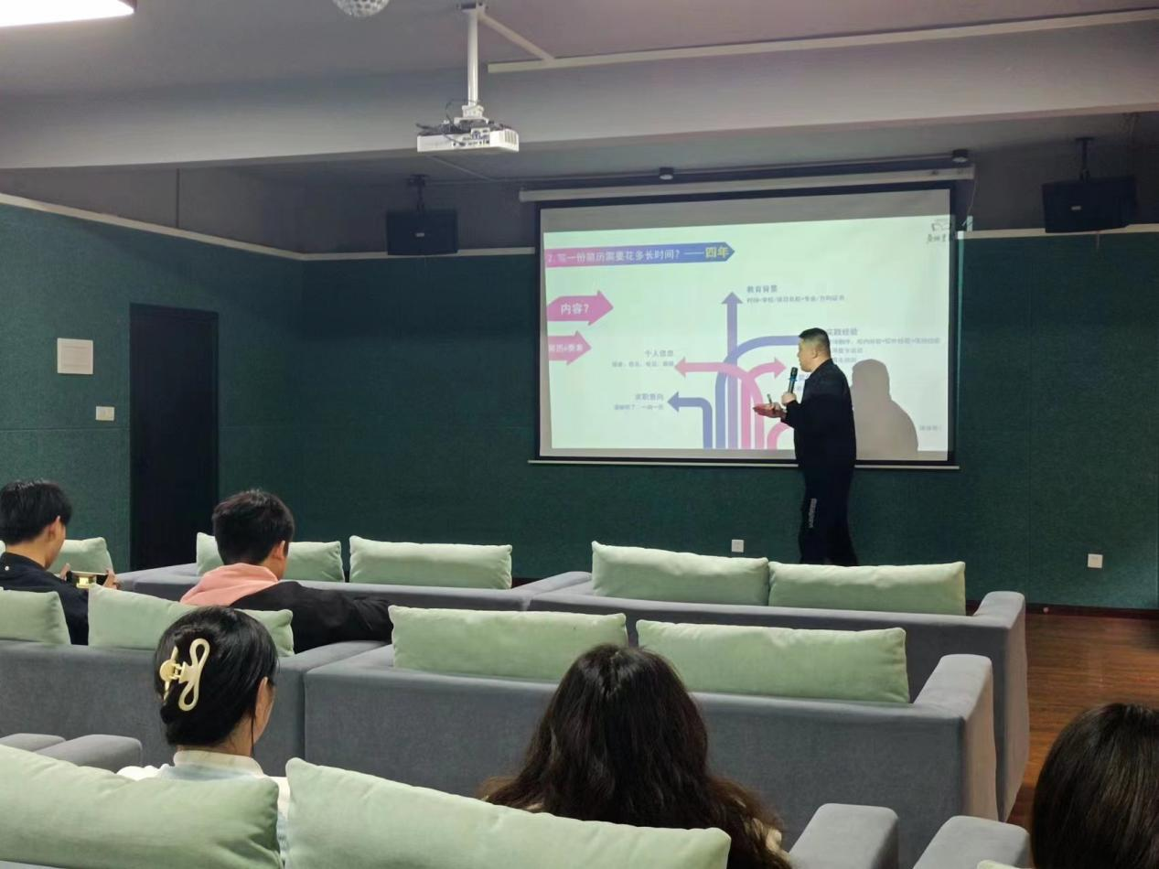 简历如同个人名片一样,一份优秀的简历往往是取得成功的重要条件。活动开始,徐老师以人生的经历开始讲解,发出了有关简历的灵魂五问:1.HR希望看到什么样的简历?2.写一份简历需要花多少时间?3.一份简历的灵魂是什么?4.HR针对岗位设置选人的标准那是什么、为什么写简历、有什么目的?对这几个问题和同学一起做出探讨,让同学们知道简历的重要性。