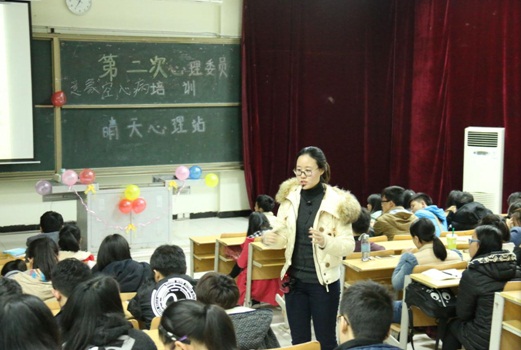 11月27日,学生处心理健康服务中心樊春燕老师、田雨老师在重庆邮电大学移通学院3101教室,为全校2016级全体心理委员和心理爱好者共计171人开展心理委员培训。