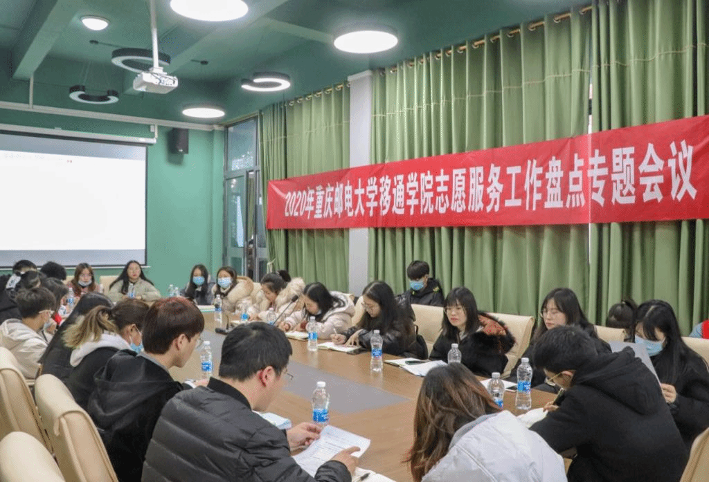 各学院志愿服务骨干代表对本学院志愿服务项目、阵地、校外资源总体情况及本学期志愿服务活动数据、学院工作亮点进行总结发言。截止2020年12月我校现有志愿服务阵地78个,志愿服务项目105个,校外合作单位81个。各学院志愿服务工作在全校志愿服务体系下不断创新优化,形成了具有学院特色的志愿服务活动体系,不断探索志愿服务一院一品的工作目标,其中大数据与软件学院打造“禁毒防艾”品牌,淬炼商学院以青年信用体系建设为抓手打造“诚信商院”,通信与物联网工程学院开展环保类志愿服务打造“绿色通信”。