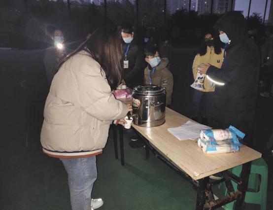 早上7:30,在各关键点陪护的工作人员和志愿者分别抵达所负责的工作点,全体参赛选手按队伍集合,工作人员开始对选手们进行检录。在核对完每位同学的参赛信息后,为他们分发马甲、号码牌和红糖姜水等,可谓无微不至。