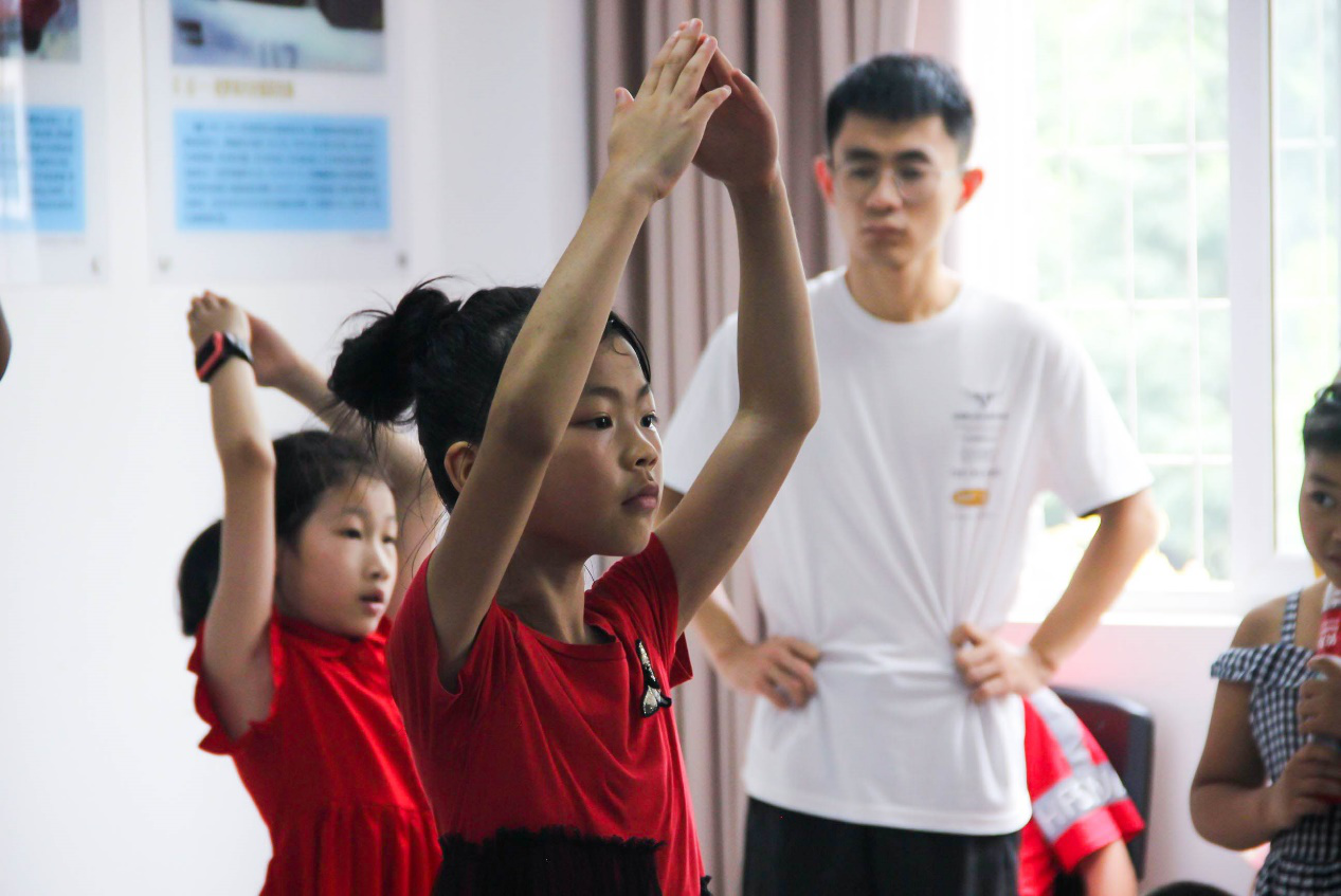 “执文化之笔,助乡村振兴”, 为推动乡村文化建设,发挥青年志愿者在助力乡村文化振兴中的作用,重庆移通学院“执笔”文化艺术服务队为献礼建党百年,将举办文艺汇演活动,7月7日,志愿者带领小朋友进行节目排练,帮助小朋友们了解党的光辉历史,厚植爱国情怀。