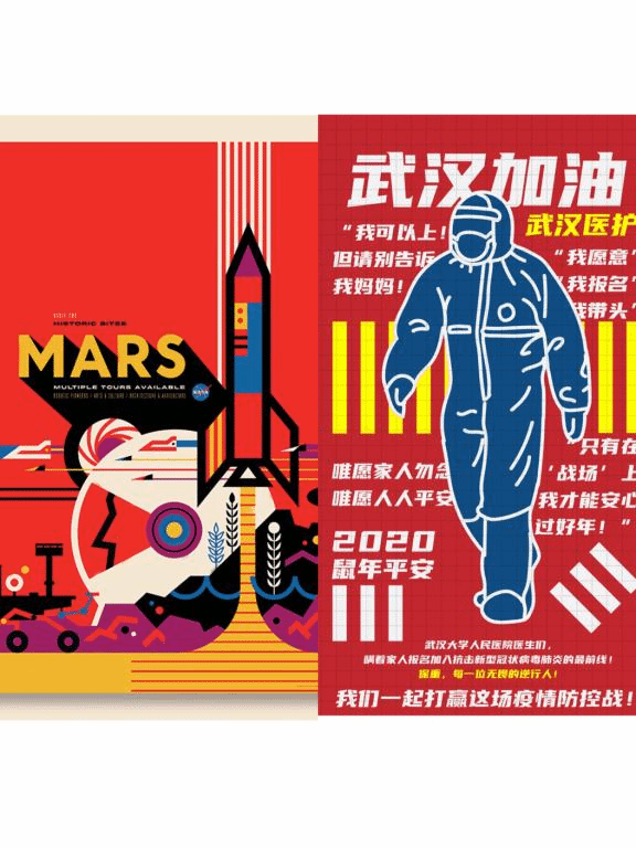 胡燕老师在《数字图像设计艺术》课程中,将国家相关时政新闻内容通过关键词的形式展示给同学们,比如神十三、建党100周年、北京冬奥会等,并根据语意进行图标、logo或海报的创意制作,帮助同学们在学习过程中,树立爱国情怀。