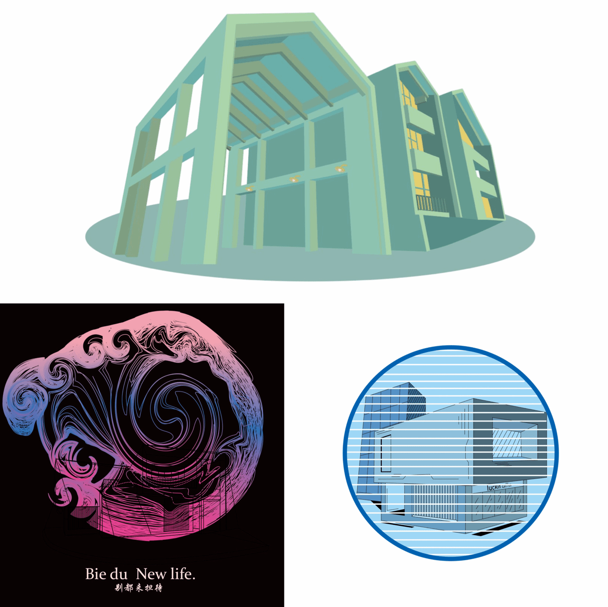 廖国臣老师在《构成基础》课程中也将中国传统文化贯穿其中。让学生从诗歌、诗词、音乐中提炼点线面元素,并通过自己对这些内容的理解进行创作,将唐诗宋词转化成一幅幅精美的画面,图文结合,生情并茂。