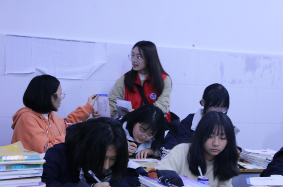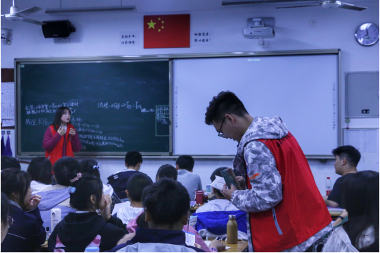 本次分享会的形式是分班进行,由志愿者们分别到两个班级同时进行分享。志愿者们通过分享自己高中学习技巧以及以过来人身份总结高中生活,与高中生们进行相互交流。