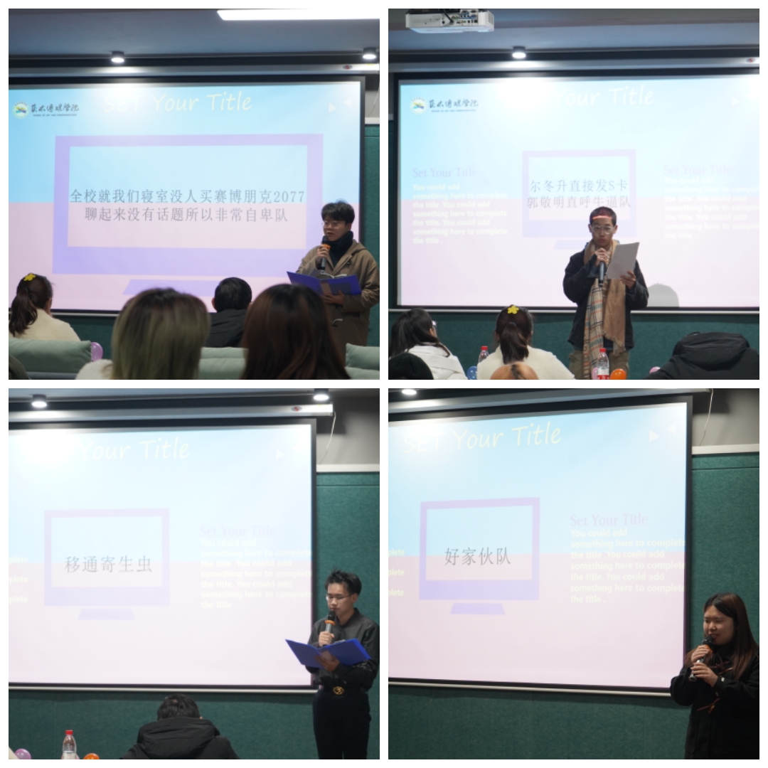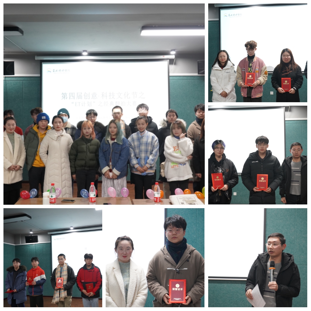 为顺应信息时代的发展,让经典活在当下,也为呼吁同学们以包容和欣赏的眼光看待翻拍作品,正式翻拍作品,12月28日,由艺术传媒学院承办的第四届创意·科技文化节子活动之第三届“ET计划”经典翻拍大赛决赛在爱莲书院多功能影音室顺利开展。艺术传媒学院团总支书记陈婷婷老师、社团活动指导老师孟易、宣传工作指导老师叶进,与进入决赛的十支队伍共同欣赏影视作品,交流经典影视艺术。