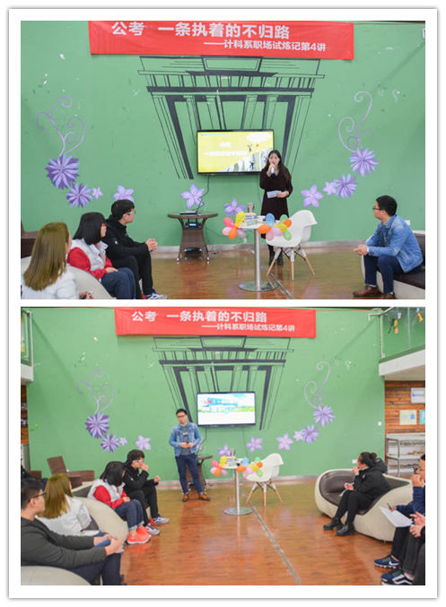 细雨朦胧,空气中又增添了一丝丝凉意,在凉意之中,计算机科学系职场试炼记第四讲正在如火如荼的开展。2017年3月24日下午16时于中德书屋开展了职场试练记第四讲,此次讲堂邀请了计算机科学系学工办主任谢银平老师、2016级辅导员吴垟成老师、2016级辅导员唐凌云老师做客“职场试练记”,本次讲堂由2013级辅导员王焱老师为大家详细的解析“公考”,以及如何面对公考。