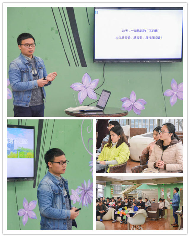 在座的学子都很关心的一个问题就是公*到底难不难?王焱老师从公考的形式为我们做出了分析,考试分为行政职业能力测试,申论、面试三个方面。第一个方面考的是一个人的逻辑推理能力需要较强的功底,申论需要的就是人的写作能力与头脑的分析能力,面试就需要人的综合素质。综合三个方面不难看出要想成功的当上公务员是需要不断积累的。“千里之行,始于足下”。不论是什么事情都需要积累天上掉馅饼是不可能的。只有不断的提升自己在哪你都是别人眼中的“香饽饽”。