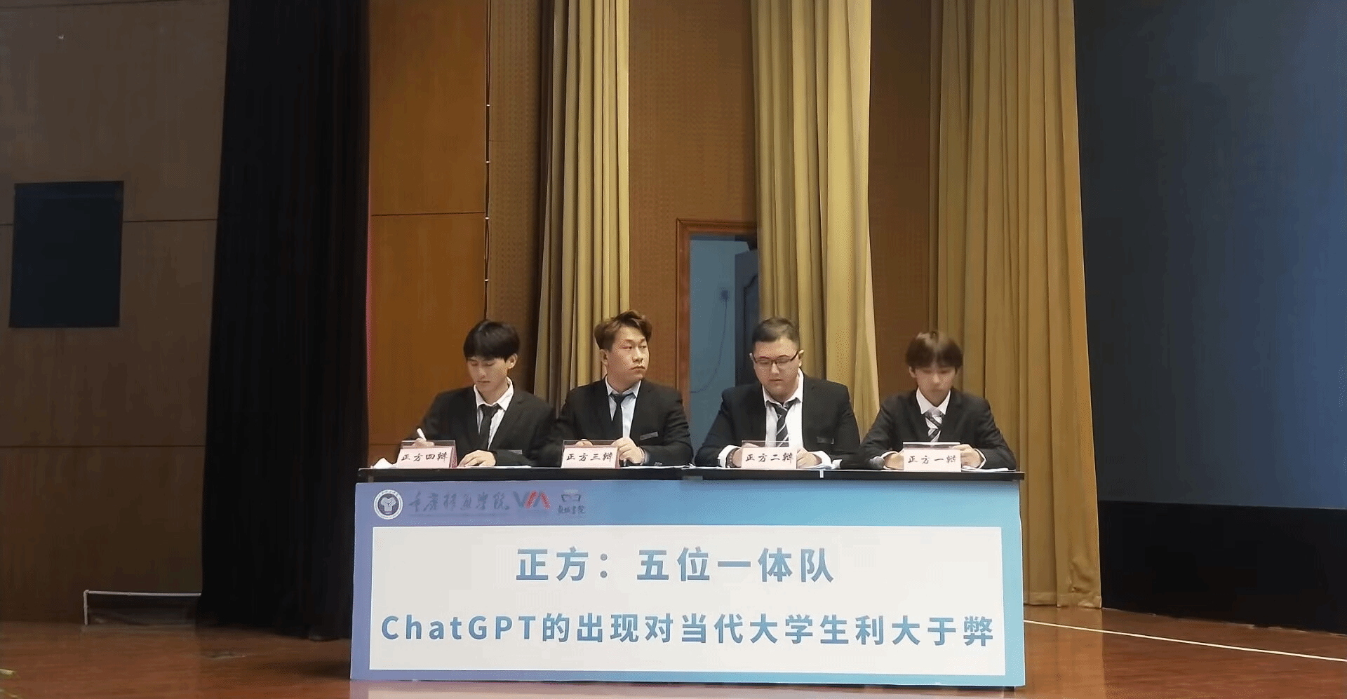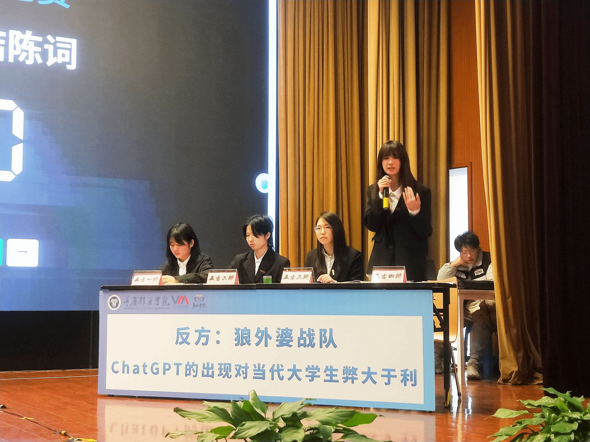 本次冠军赛辩题为:ChatGPT的出现对于当代大学生来讲利大于弊/还是弊大于利。比赛大幕拉开,智能工程学院“五位一体”队与来自淬炼商学院的“狼外婆”队的冠军争夺战正式开启!冠军赛辩题脱胎于2023年开年科技热点——ChatGPT,在科技迅速发展的当下,当代大学生该如何面对这个科技成果,给辩手带来了极大的挑战,但双方充足的赛前准备和精彩的现场表现说服了在场的每一位评委和观众。双方分别从未来科技发展和学生个人发展方面给出了充足的论证,也把胜负的悬念带到了最后一刻。通过辩论赛的形式不断锻炼参赛选手们的思辨能力,提升辩论爱好者们的求知欲望,让站在时代浪尖的青年学生有智可思、有论可辩、有言而无阂,正式是鱼城书院举办各种辩论赛的初衷与目的所在。