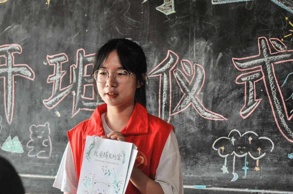 志愿者们为营造一个温馨有爱的课堂氛围,到达教室后,用心布置开班仪式,为“七彩课堂”注入生机与活力。开班仪式正式开始时,戴花村的张洪叔副书记表达了对志愿者的感谢和支持,志愿者们进行自我介绍,小朋友全神贯注,对小老师充满热情与渴望,此外志愿者制作“儿童成长档案”,用“一对一”的方式,了解留守儿童的心理变化,记录孩子们七天的成长。