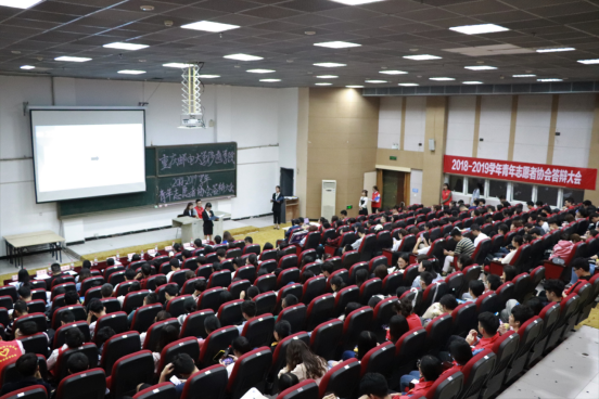 2019年5月28日12:30,我校“2018-2019学年青年志愿者协会答辩大会”于3202正式举行。本次答辩大会邀请到了各院系学工副院长、副主任等担任评委,校院两级志愿服务版块指导老师们、九大院系青年志愿者协会共计200余人参与此次大会。