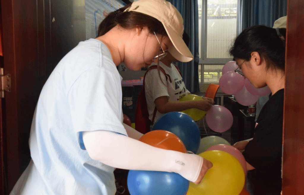 5月31日早上,为小朋友们度过美好愉快的节日,志愿者们紧锣密鼓的在校园操场布置装饰游戏场地,准备需要的物资,大家积极搬移帐篷,教室的桌椅,吹气球,准备小朋友的礼物,到处洋溢着节日的氛围。