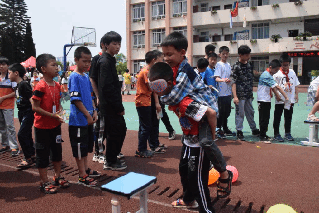 (瞎子背瘸子,小朋友相互配合,合作意识增强)