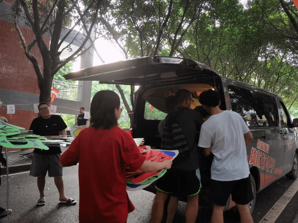 (志愿者在活动前一天下午搬运帐篷和物资)