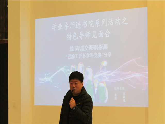 思考始于发现,创新源于实践。为在书院制的培养模式下创造师生之间充分的交流机会,指引学生了解学科竞赛的内容和要求,增进学生实践创新能力的增长,促进学校内涵式发展。12月12日晚7点,由智能工程学院主办的特色学业导师见面会在荷悦109功能室正式开展,冯铁成老师、张溪老师作为本次学科竞赛分享会的主讲嘉宾。分享会以“巴渝工匠杯学科竞赛”为切入点,现场气氛活跃、座无虚席。