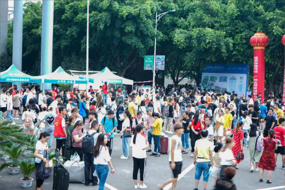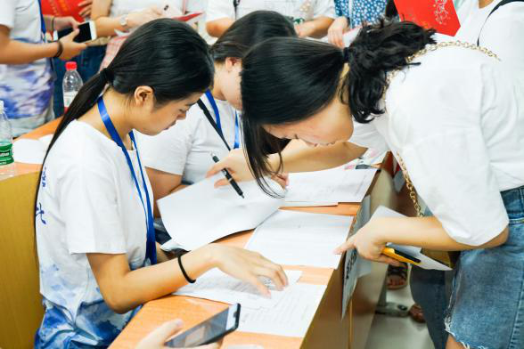 在移通学院各位领导的指导下,各院系的迎新教室、迎新服务站准备了免费饮用水和塑料凳,保证在炎热的天气能为前来咨询、报到的新生和家长提供一个凉爽、舒适的环境。校园内人声鼎沸,处处洋溢着迎接新生的热闹氛围。