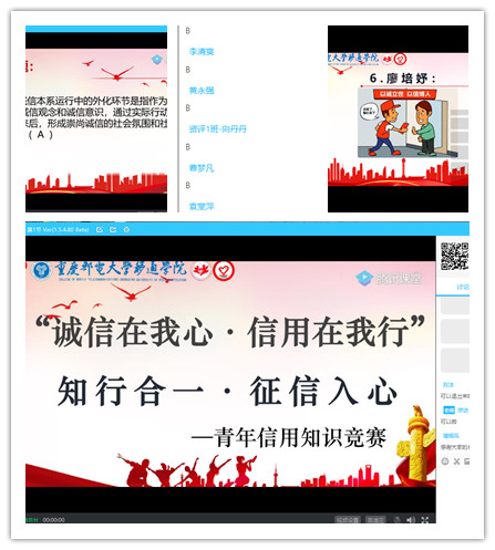 诚信班级大作战持续了整个诚信月。参赛班级在规定时间段策划并开展活动。各个班级在此次活动中竭尽所能,在线上也能尽显本班的风采。4月29日下午,班级完成答辩并产生了三个诚信宣传类班级及三个诚信实践类班级。此次“诚信在我心·信用在我行”诚信月活动画上了完美的句号。