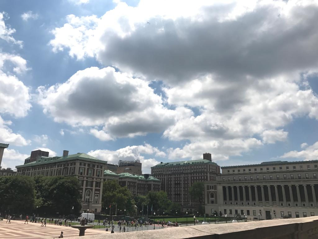 哥伦比亚大学坐落于曼哈顿上城,治安条件相较于其他地方是很不错的,所以从白天到天微暗都能比较放心的在学校游览。而在哥伦比亚大学学习的每一天都是充实的。无论是在广场、教学楼、图书馆、街道还是宿舍,处处都充满了未曾体验过的惊喜。想起太阳,我会觉得灼烧眼睛,会觉得热,如今我发现它才是记录地球上一切的载体。在世界的所有角落,我们看到的都是同一颗太阳,没有所谓的国外的“太阳”比较圆,而是无论我们在何处,太阳都在记录我们的成长。或许我们认为太阳每日东起西落,看到的都是一样的世界,毫无新意,而事实上太阳就在那里,我们要不断前行才能感受到不同的太阳。当太阳照常升起,望天空无边无际。