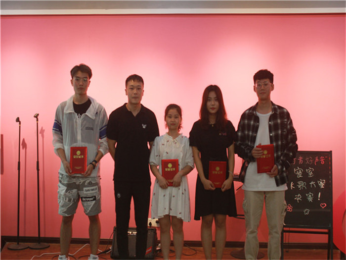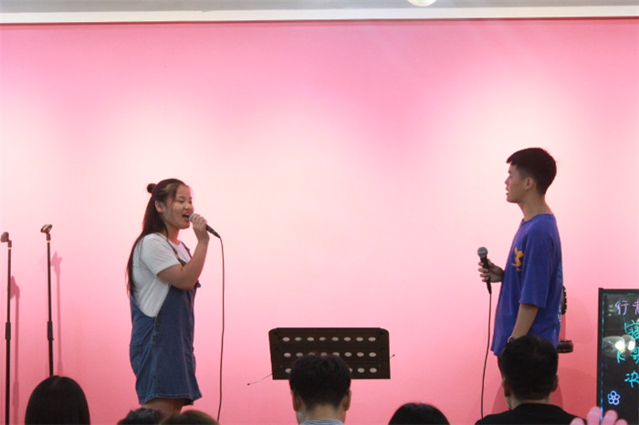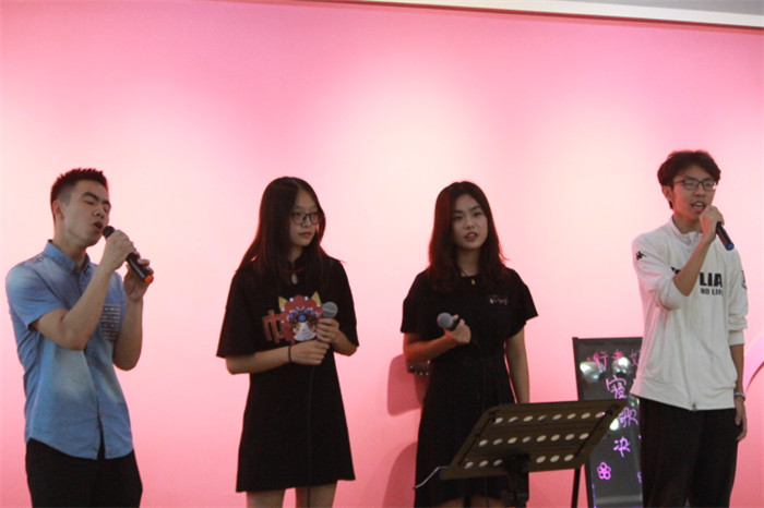音符飘扬,青春激荡。为增进两大院系间同学们的社交圈层,提供更多社交可能,打造温暖和谐的书院“家文化”,同时加强两大院系艺术修养文化建设。2019年6月12日晚7点,由外国语言文学系、智能工程学院联合主办的第一届“行者好声音”寝室网络K歌大赛决赛在爱莲书院举行。此次比赛邀请到的嘉宾有:智能工程学院副院长李巧老师、外语系副主任祝玮老师、艺术教育中心赵建萍老师、外国语言文学系艺术板块指导老师黄灿、智能工程学院艺术板块指导老师史玮、辅导员向姝老师、李凤老师,以及智能工程学院张溪老师。