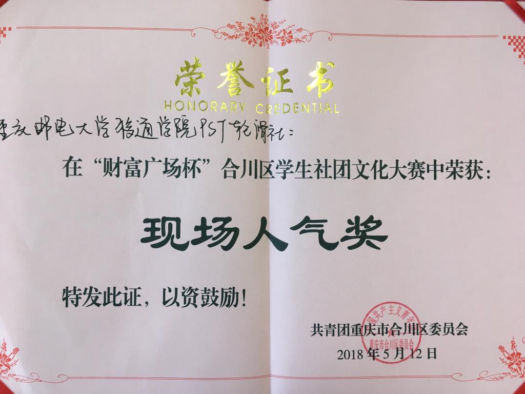 本次“正能量•正青春”合川区学生社团文化大赛历时一个多月,从前期组织准备、宣传推广、联系社团负责人,到中期节目内容准备、以及各项比赛所需物资进行比赛选拔,到最后的比赛完满结束,一路走来历练颇深。我们有过累有过苦有过想要放弃,但最终都坚持了下来,因为青春的正能量在呼唤着我们,最终坚持到最后一刻,完成了这次大赛。