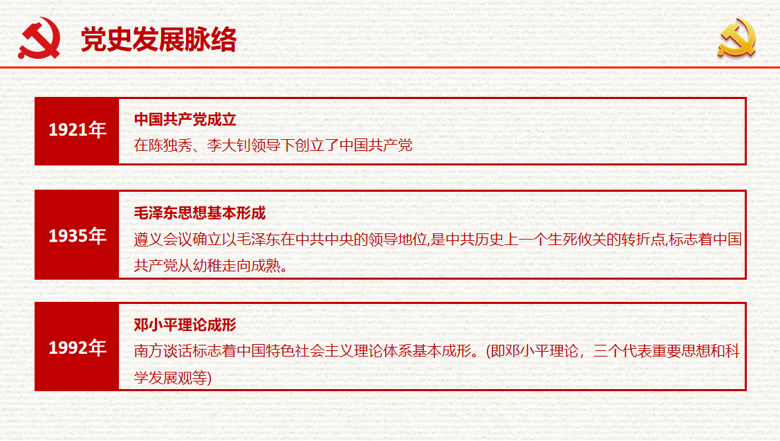 1921年,中国共产党成立,经历了主要领导多次更换,作出过“右”倾机会主义,“左”倾冒险主义,“左”倾投降主义、教条主义等错误判断,无数革命先烈和仁人志士惨遭杀害,稚嫩时期的中国共产党付出了沉重的代价。然而,共产党人坚定理想、百折不挠,继续在艰苦卓绝的斗争中寻求正确的道路和党的领导核心。终于在长征途中的遵义会议(1935)上,确立了毛泽东在中央和红军中的领导地位,坚强的领导核心,标志着中国共产党从稚嫩走向成熟。