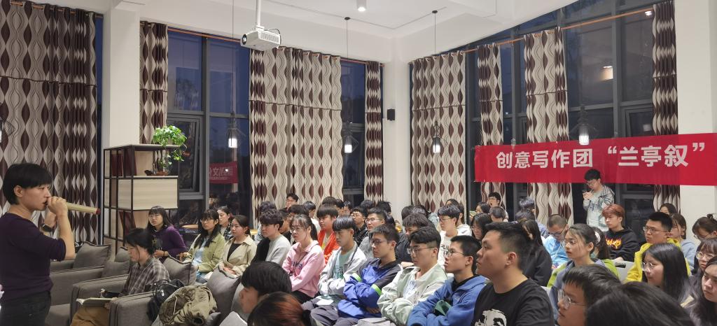 性格开朗的龙耀平同学,创意写作团对于她而言有无限的吸引力。在创意写作团,无论是相处的小伙伴还是指导老师,抑或是每月丰富多彩的“兰亭.叙”系列文化活动和“魁星有约”,都让她觉得别开生面,在这里见到了不同老师的讲座,同时也学到了很多。“兰亭.叙”系列文化活动每月定期开展,邀请知名作家、诗人、学者与学生们面对面交流,一同畅谈文学,从小说、非虚构、诗歌、散文等文学方面的知识,导师讲述引导同学们踏上文学之路。本学年的“兰亭·叙”的文化讲座,龙耀平一次都没有落下,通过毕然老师的讲座,体验了创意写作思维训练的神奇;听了作家王恒绩老师讲新闻,懂得写新闻的秘笈;通过作家郭玉瑞老师的小说讲座,看到了另一个不同的自我;在作家丁伯慧院长关于文学讲座,有了不同的思考;在作家吴帆老师的武侠小说讲座中,感受了意趣;在作家苏瓷瓷老师的诗歌讲座中,体验到了真情的力量;在作家、编剧张林老师关于戏剧讲座中,学习了编剧的思维;在作家毕然老师关于旅行、历史与散文的讲座中,有了自我认知的提升。当然,她还清楚地记得自己第一次参加创意写作团“兰亭.叙”的文化讲座活动,作为主持人,兴奋了好久,写好的主持词一遍遍的修改,演练,最终在台上鼓足勇气,发挥超长,从此她体验到了不一样的感觉。