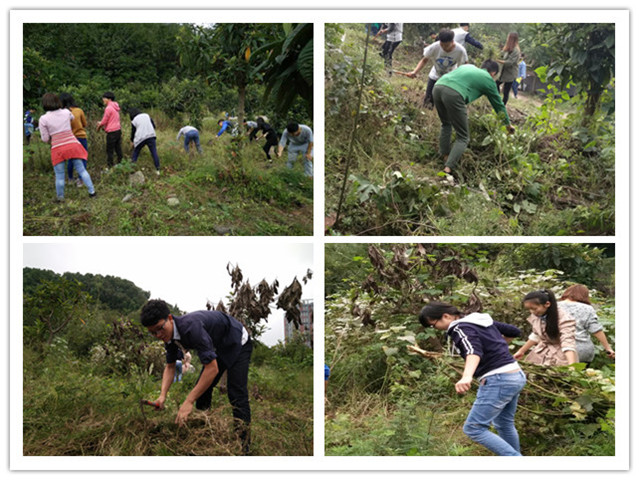 晨露未泯,荒草杂生,第一天响午,每位同学都走进田地之中,用工具或者双手去除草,去劳作!