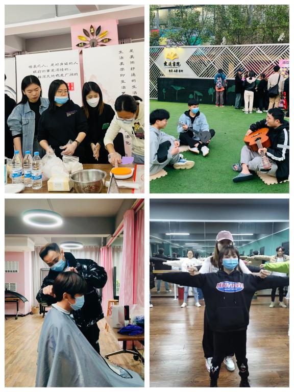 新时代的年轻人,无论怎样都停不下热爱生活的脚步,而书院就是致力于给大家提供更好的生活服务。在书院影音室里有班团在唱歌, 排练厅里有师生在共舞,小广场上有人在吉他弹唱,乐器排练室里三五成群探讨着新歌发布,当然,更少不了我们的家园乐趣活动,瞧,异科导师张红老师正在带着同学们认真地做着烘焙,唤起书院“家”味道。听同学说,头发已经长,想要理发却很难,于是书院老师记在心里,豪气留言:安排!