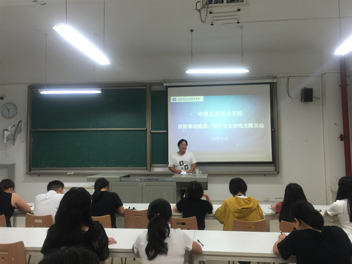 为坚决贯彻落实学校党委关于大排查大整治大执法的工作主线,坚决打好我院防范化解重大风险攻坚战,中德应用技术学院于6月22日17:30在6208成功举办“消除事故隐患,筑牢安全防线”主题活动,活动由中德应用技术学院院长尹浩亮副教授主持,学院各部门负责人及全体行政人员、辅导员到场参与。