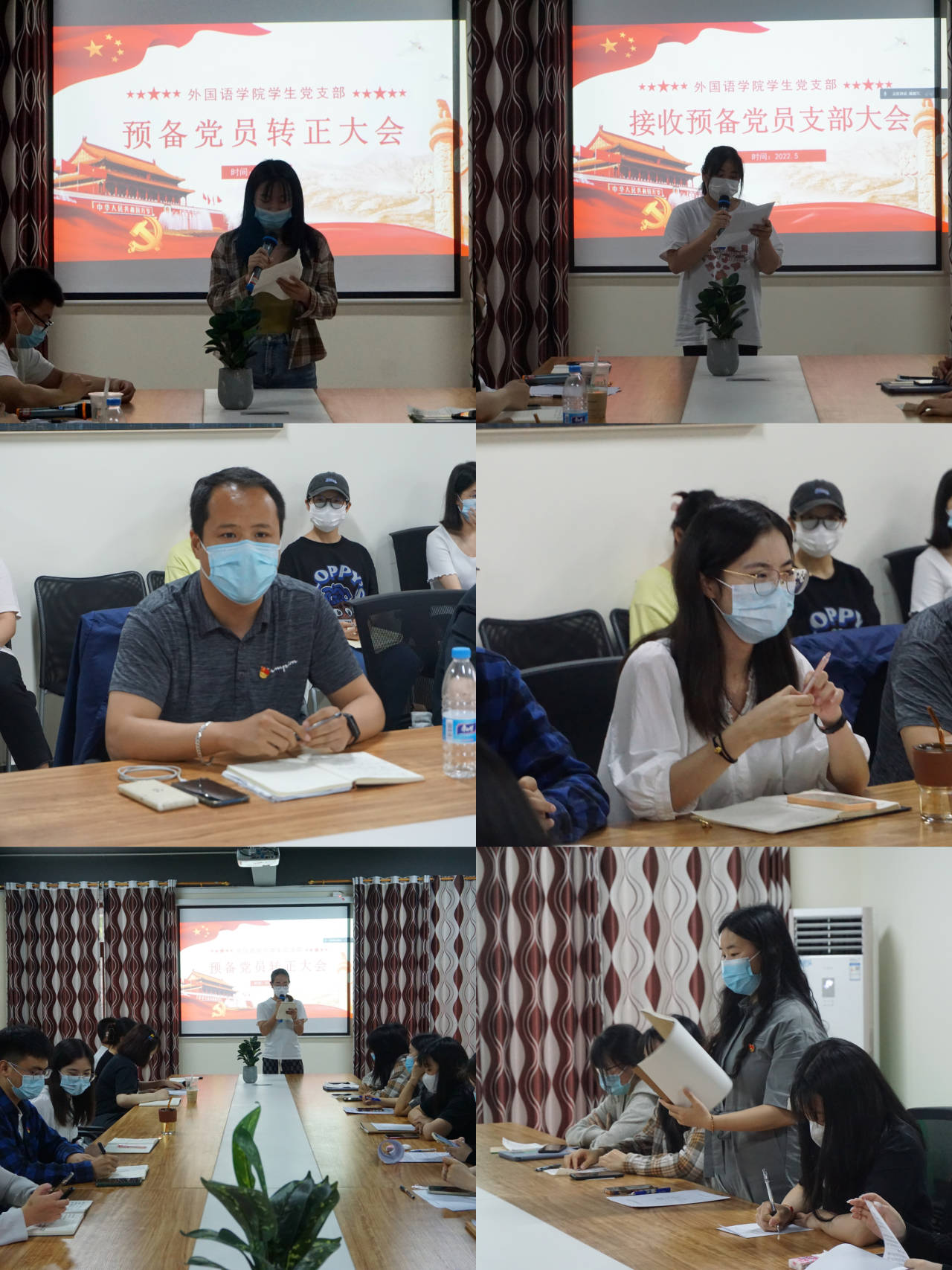 “我志愿加入中国共产党……随时准备为党和人民牺牲一切,永不叛党。”一字一句,神圣而豪迈,体现了党员同志们对中国共产党的无限忠诚,时刻提醒着自己所肩负的神圣使命和责任,不断强化对党的忠诚及对共产主义事业的不懈追求。5月26日,外国语学院学生党支部全体党员在荷悦112会议室参加了预备党员转正大会及接受预备党员支部大会。陈佳伶同志表示成为正式党员后,要在学习、生活、工作等各方面更加严格要求自己,改正缺点、发扬优点,给同学们树立良好的模范带头作用形象,争做合格党员。