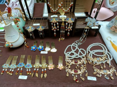 缠花手作:当天最火的摊位之一,就是缠花手作。由簪娘小姐姐给大家带来了精美的缠花,并教大家体验,极受欢迎。