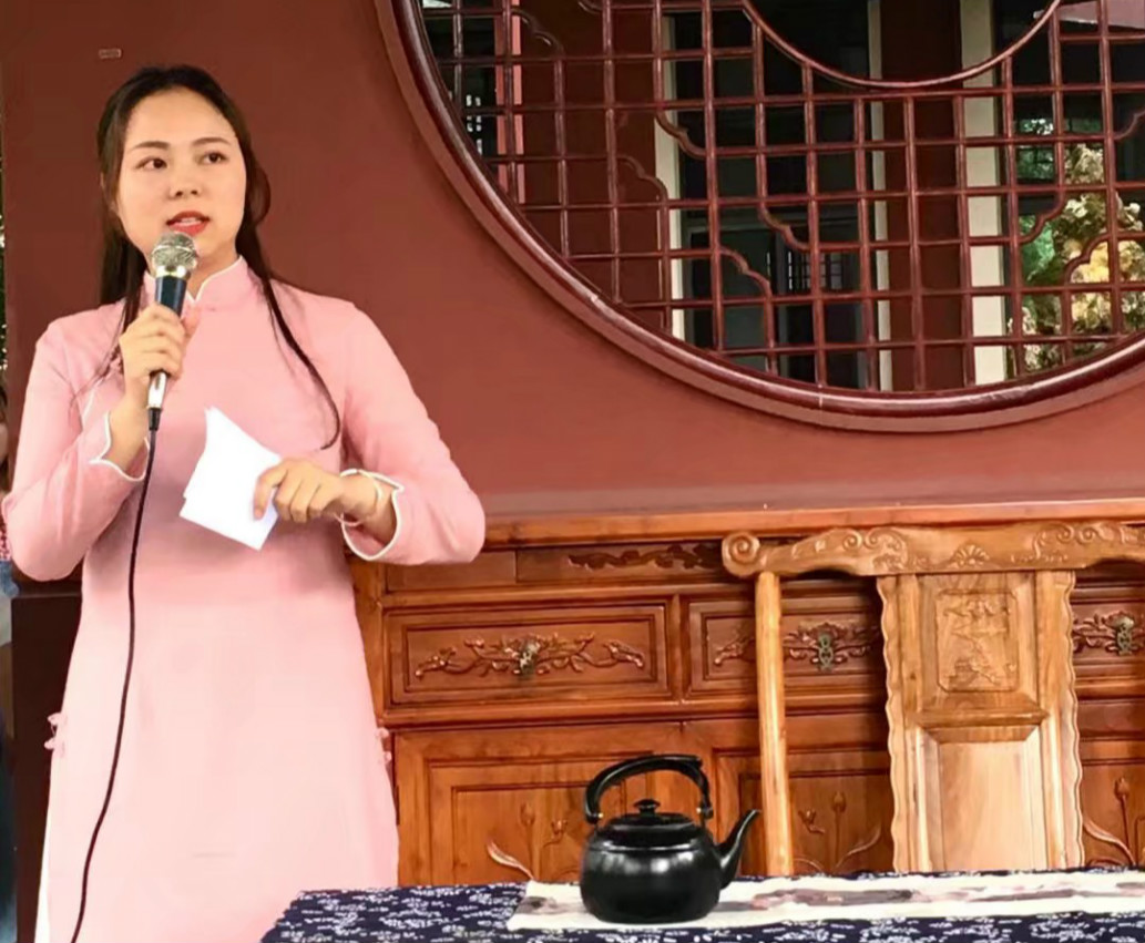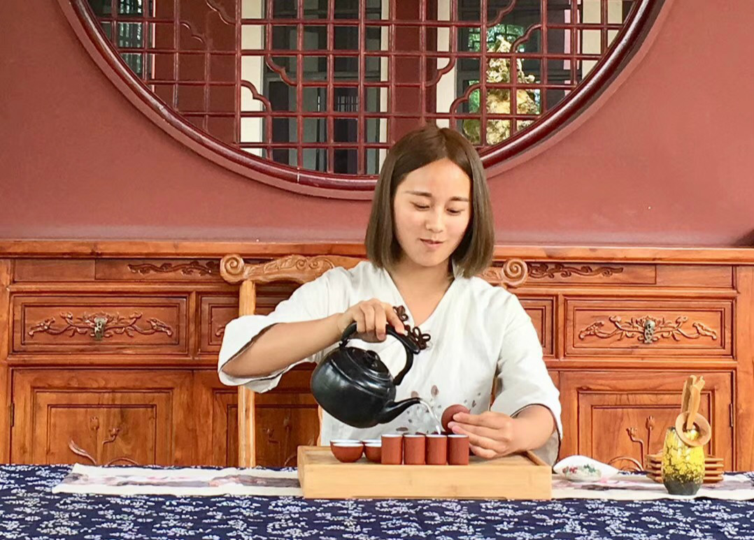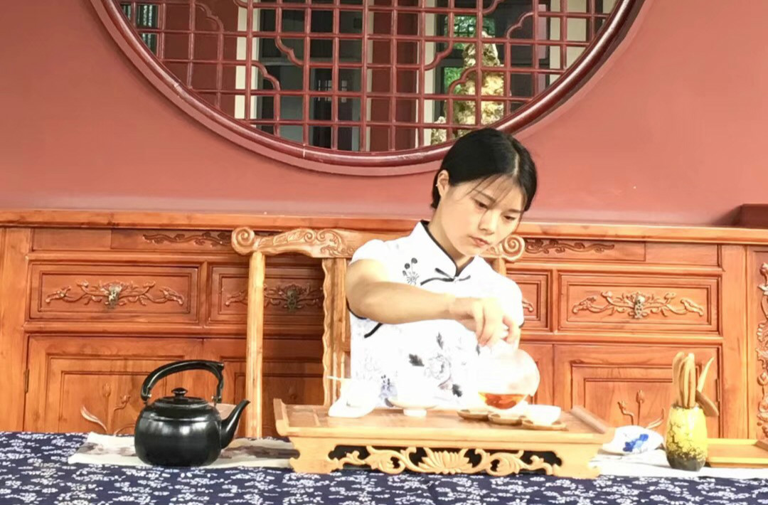 悠扬乐声的不停转变,第二组来自工商职业学院的参赛者们。独特韵味的黑茶泡法,与齿颊留香的乌龙茶迥然不同,一旁素雅的白瓷茶具,传统工艺制作的普洱茶砖,无一不让观众感到另一番滋味。