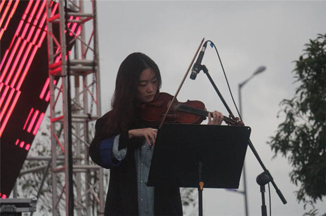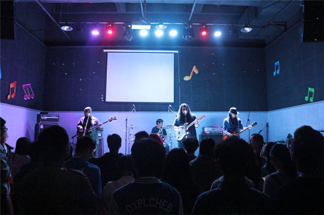 激情伴随着主唱的嘶吼回荡,修长的手指拨动着吉他,有力的双手敲打着架子鼓,听,一阵阵鼓声,吉他声,贝斯声,传入耳中,萦绕身旁。时而甩动头发,时而全身抖动,为整个乐队的演奏营造着躁动氛围,股股狂野气息迎面而来,无摇滚,不青春,什么叫激情?这便是激情。