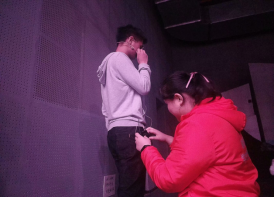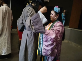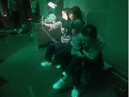想念认真可爱的你 在后台,“小果”依然记得演出前你帮助学弟整理演出服、临上台前再看看剧本、为了缓解上台的紧张状态,你做起了肢体热身、也和其他小伙伴一起来张自拍照。
