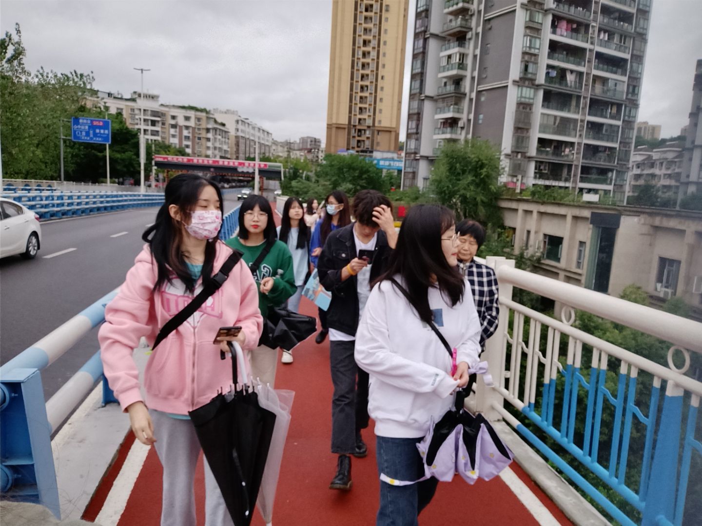 人民公园是徒步第一站,这个掩藏在居民小区里的公园比想象中的更大,国庆刚过不久,公园里随处还矗立着红旗,很有节日的氛围,各个团队成员陆续抵达并在公园内小憩休整;第二站是东渡大桥,站在桥上的大家饱览了合川的无敌江景,宽阔的河流在桥下奔涌,而河的一边高楼林立;第三站是钓鱼城路边的田园风光,静谧中是团队成员们叽叽喳喳的嬉戏打闹声,沿途的风光很好地缓解了旅途的劳顿。各团队成员也在路途中不断增加相互之间的友谊。