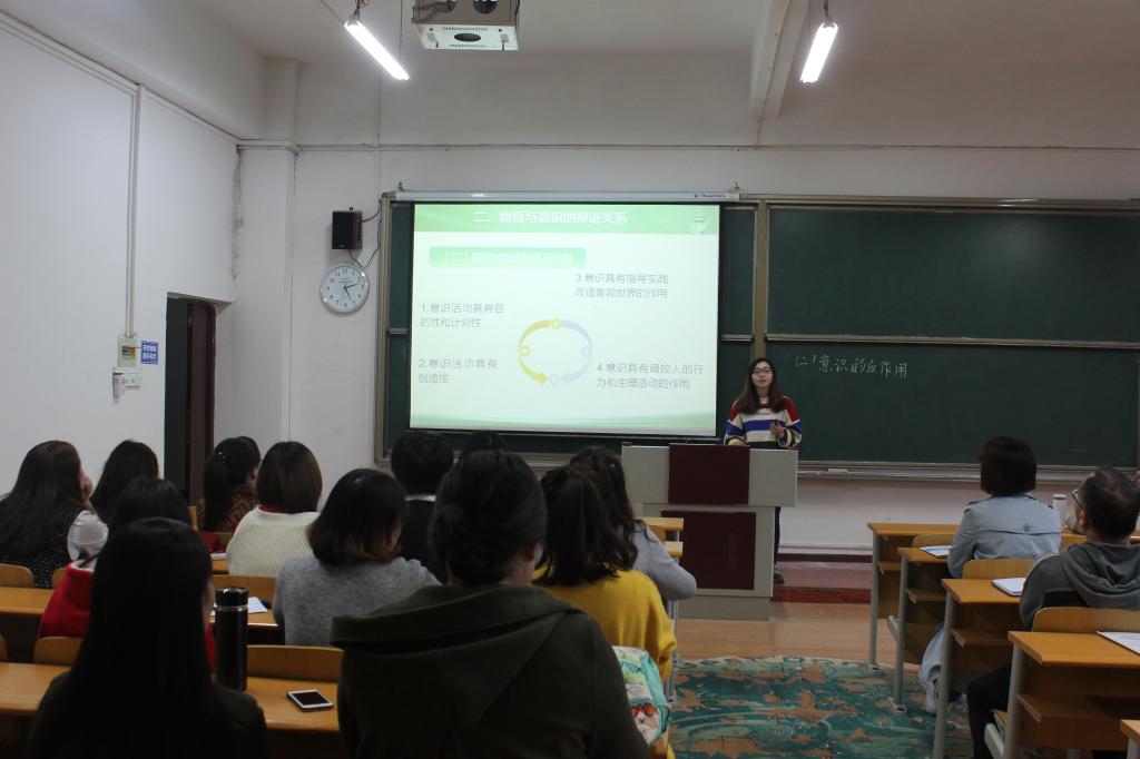 为了全面帮助、促进新教师快速成长,提高课堂教学效率,使教师的整体教学能力再上新台阶。10月24日下午,思政教学部在7210教室举行了新进教师观摩课展示活动。活动由教学部主任邓燕主持,全体思政教学部教师参加。李潇潇老师和刘世凤老师分别为大家呈上了《意识对物质具有反作用》和《抵抗外国武装侵略 争取民族独立的斗争》为主题的观摩课。
