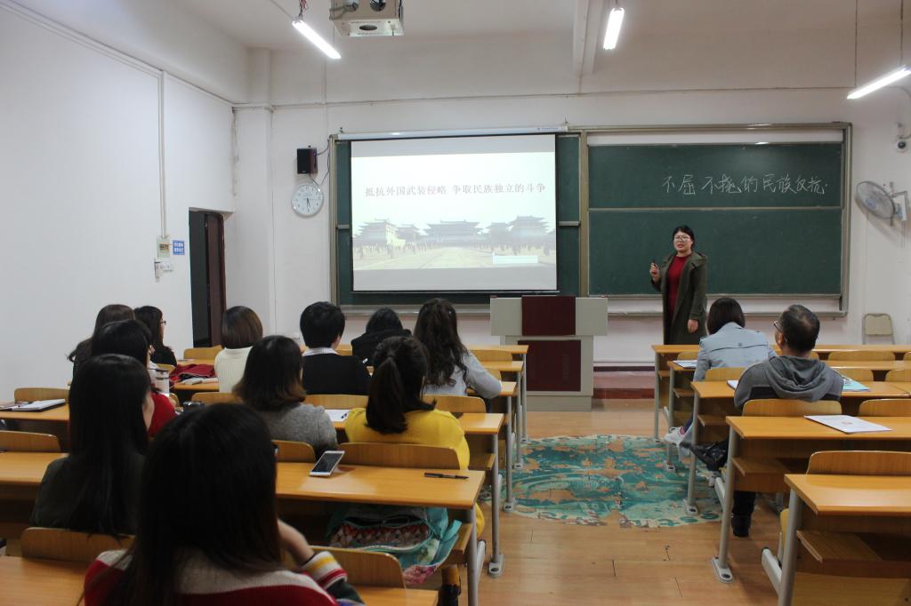 刘世凤老师所讲的主题是《抵抗外国武装侵略 争取民族独立的斗争》,她以鸦片战争后中国社会变化和人民生活的苦难状况为背景,通过介绍三元里人民抗英斗争、太平天国抗击帝国列强、台湾人民的反侵略斗争、义和团运动反抗侵略等代表性反侵略斗争的事实结果及其所展现的民族情怀和反抗意识,讲述了近代中国人民群众的反侵略斗争的意义。在讲授中刘老师能够灵活运用历史事件,通过以史为证,做到了史论结合,且授课富有激情、语言形象生动、深入浅出,充分展现了自己的教学风格。